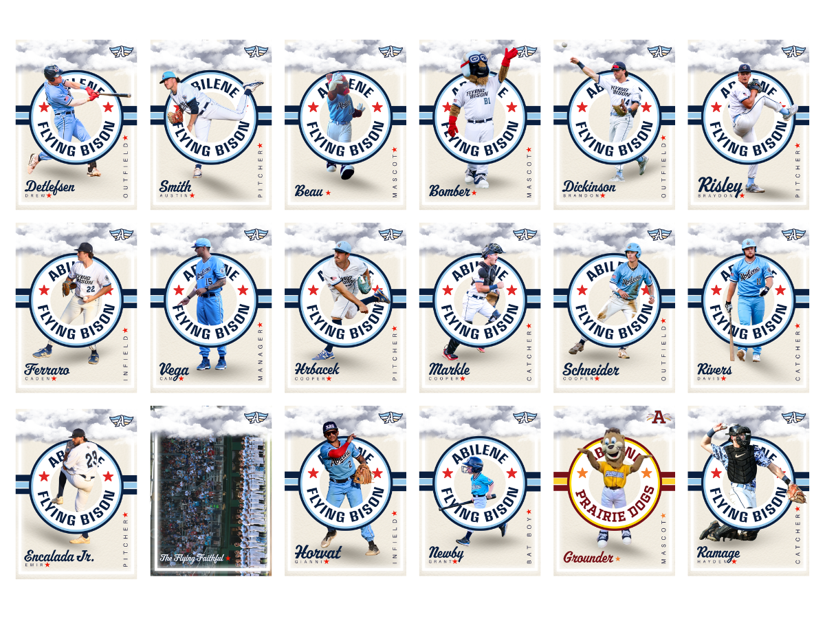 Each pack of Flying Bison Baseball cards comes with 5 random designs out of the 48 we have available. Designs include players from 2024 and 2025, as well as some special additions like mascots, event cards, and more!